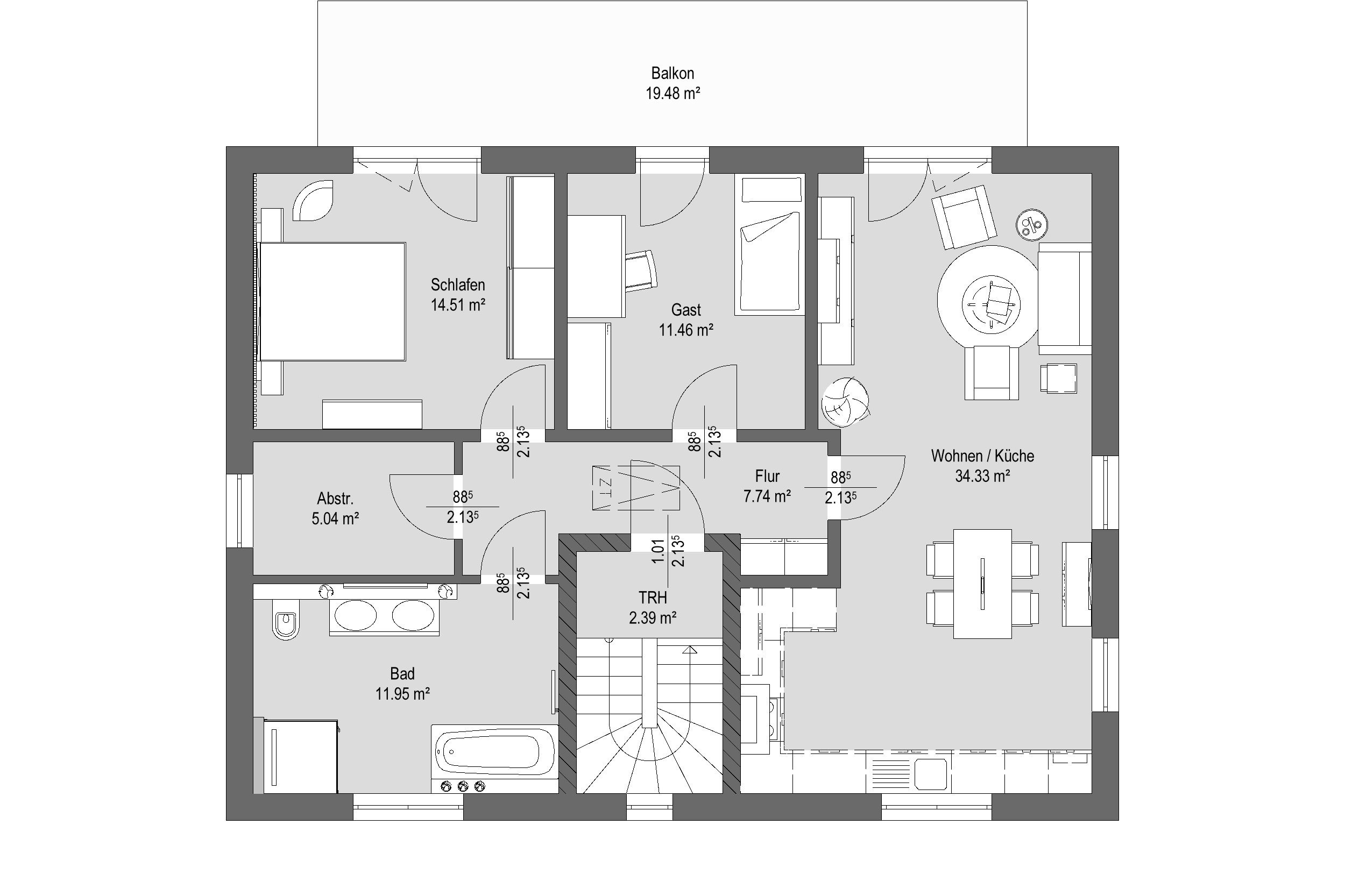 Ein Zweifamilienhaus ist die Antwort auf steigende Grundstückspreise und den Wunsch nach sozialer Sicherheit. Im Haus Plauen nutzen Sie Synergieeffekte, ohne Ihren persönlichen Freiraum einzuschränken. Die Trennung erfolgt hier klassisch horizontal: Zwei Familien wohnen übereinander, was besonders schlanke und effiziente Grundrisse ermöglicht.