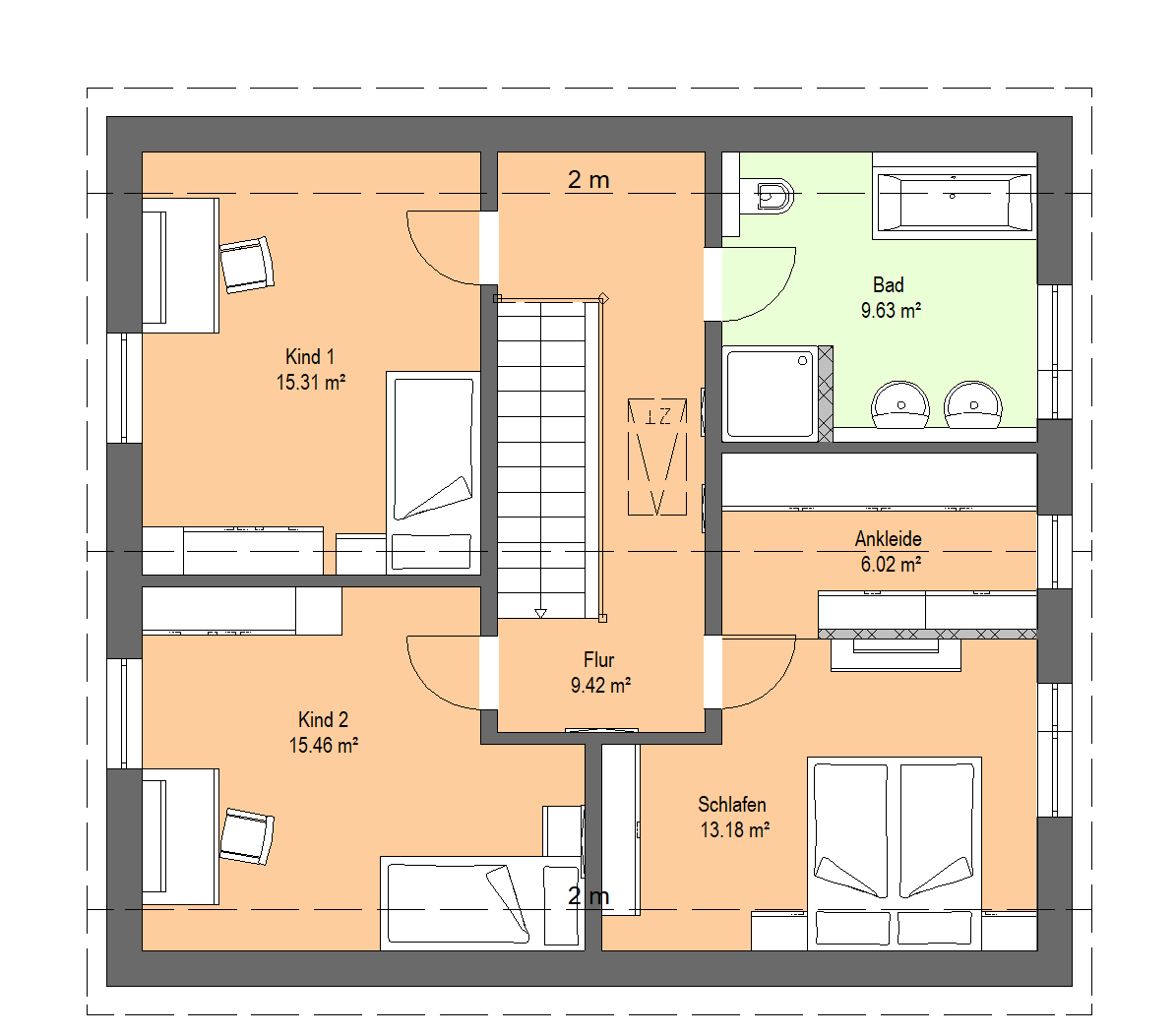 Wir verzichten bewusst auf Standardlösungen und gestalten Raumaufteilung, Zimmer, Flur, Erdgeschoss und Obergeschoss so, dass Architektur, Holzakzente, Materialien und Fassadengestaltung ein harmonisches Gesamtbild ergeben.